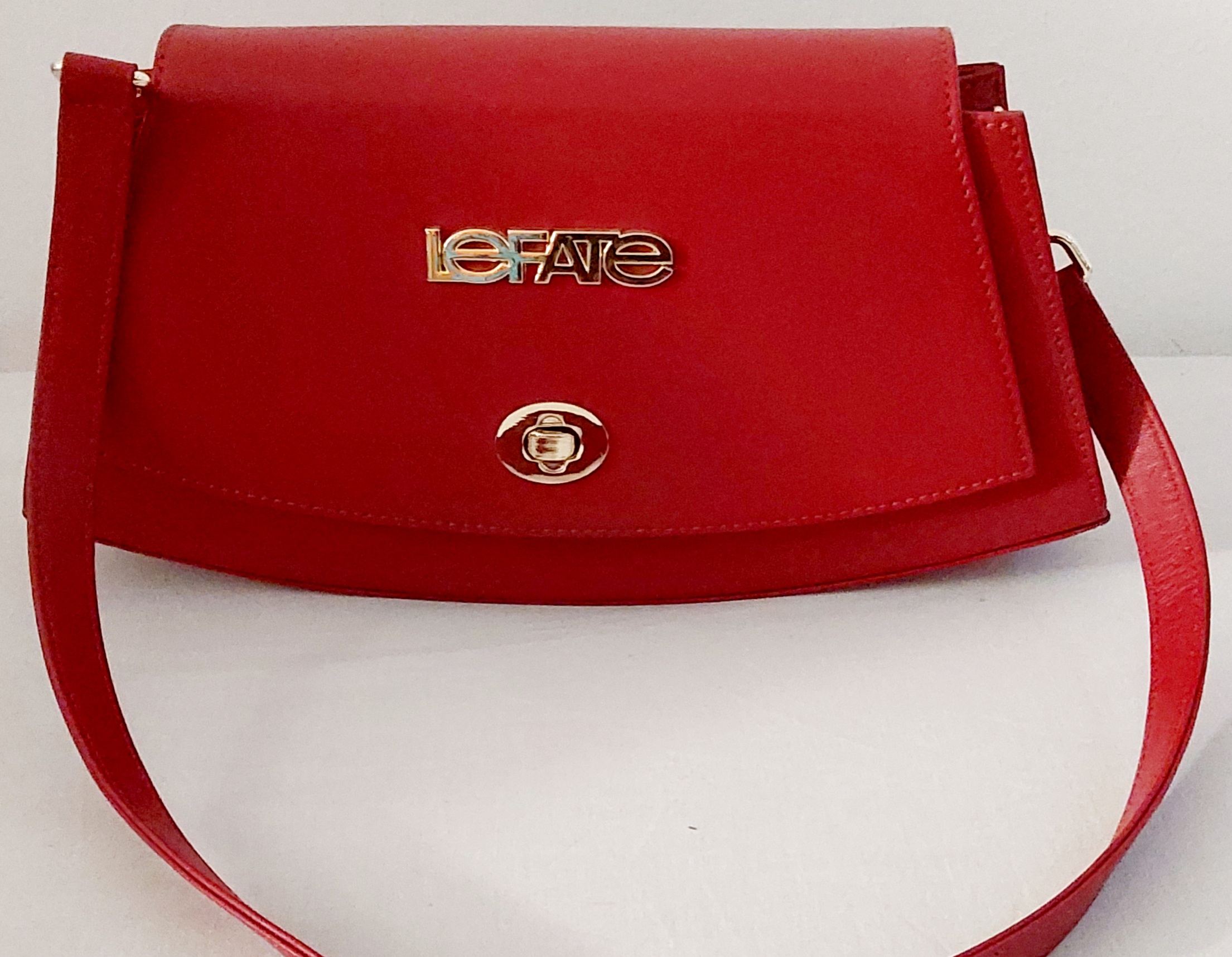 Sac à main porté épaule ou pochette, cuir vachette, bride logo LEFATE, finitions en métal doré, rabat sur le devant, fermeture tourniquet, poche intérieure plaquée, porté épaule ou en pochette.