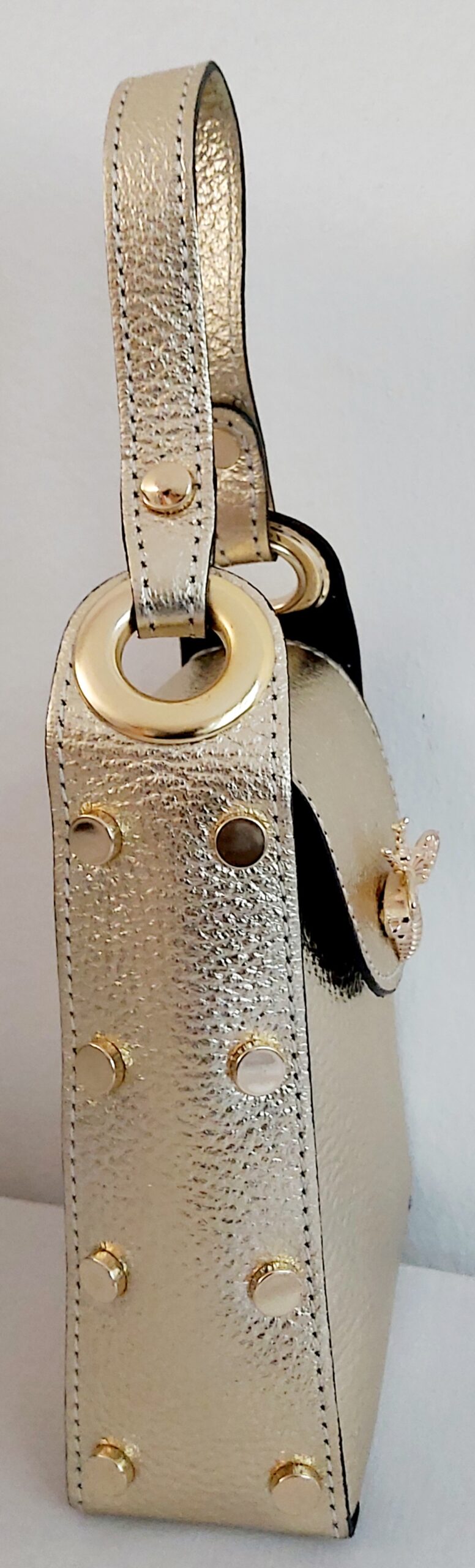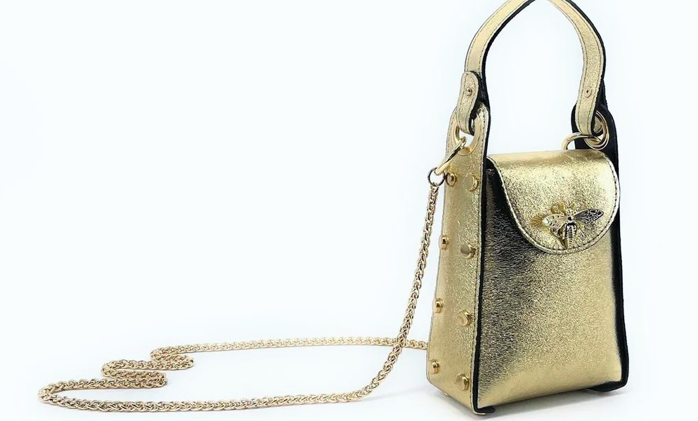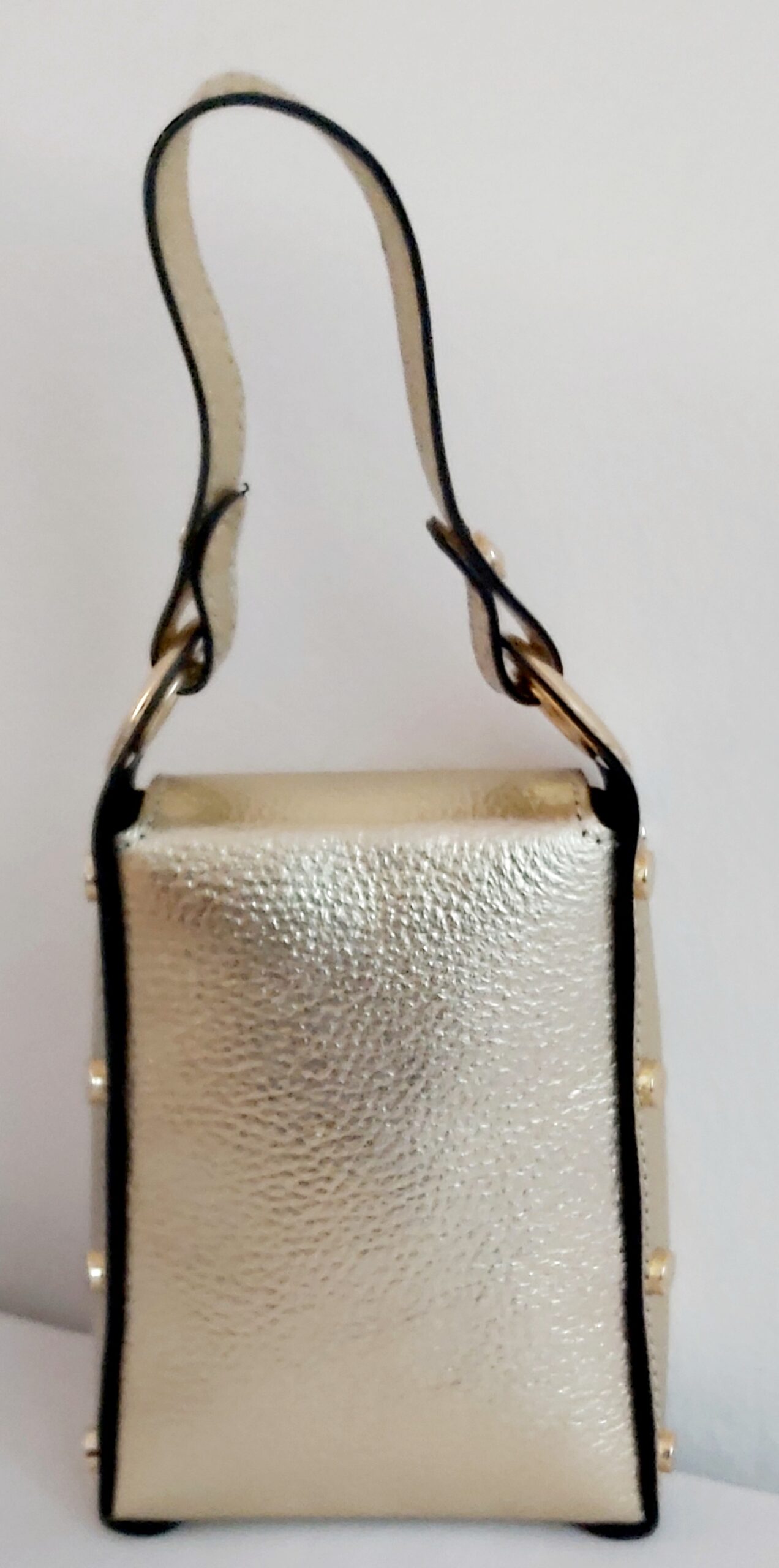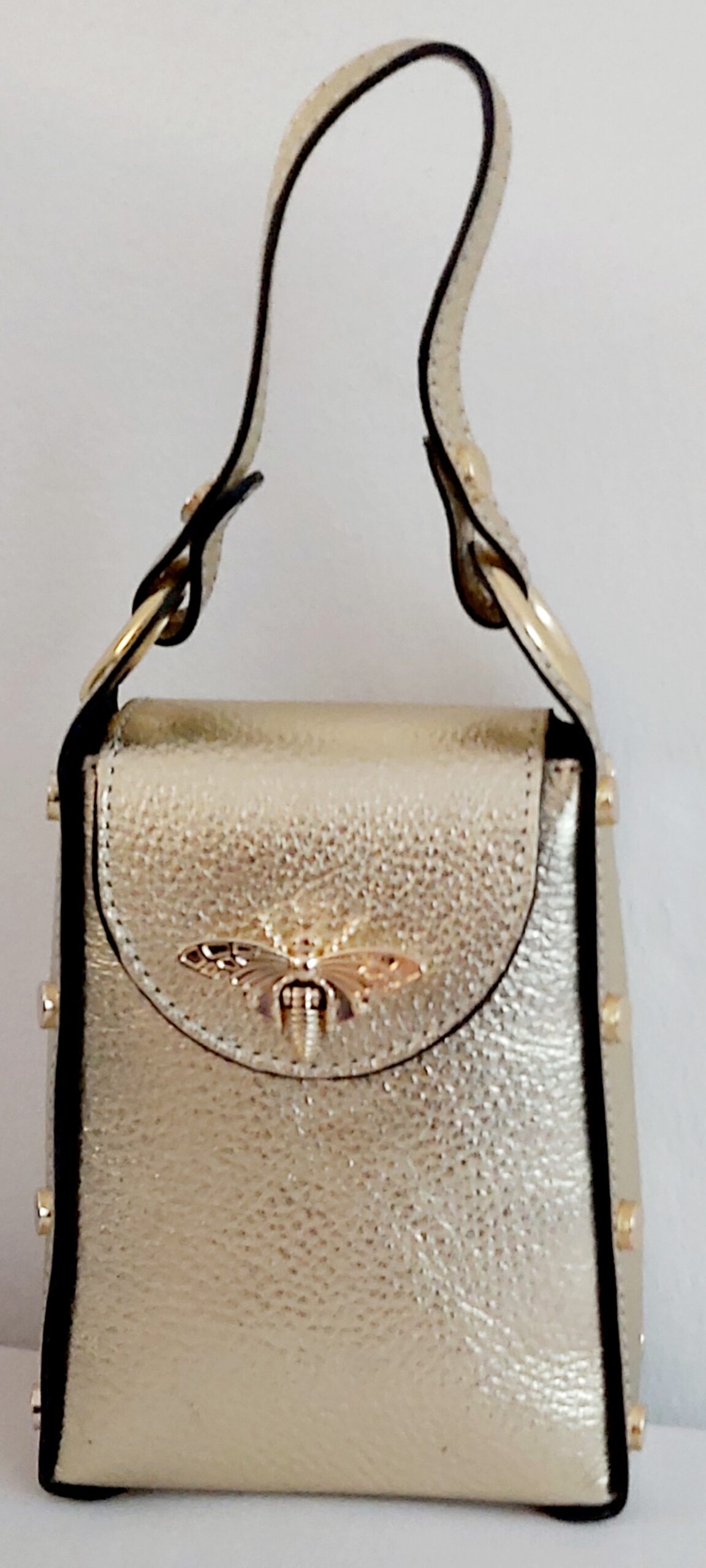 Petit Sac à main en cuir/Sac bijou Femme Idéal pour téléphone, carte bancaire, clés, rouge à lèvres… Composition : 100% CUIR vachette grainé fabriqué en Italie. Doublure : synthétique Dimensions : 12 X 16 X 5 cm Couleur : Orange. Existe en blanc et Or Forme et Tenue: Mini-sac rigide. Porté : bandoulière, croisé, épaule, main Poids : 350 g Hauteur anses : 11 cm Bandoulière : chaînette métallique amovible, non ajustable. Longueur : 106 cm Fermeture : verrou abeille Finitions métalliques : Clous dorées décoratifs Style: chic et tendance