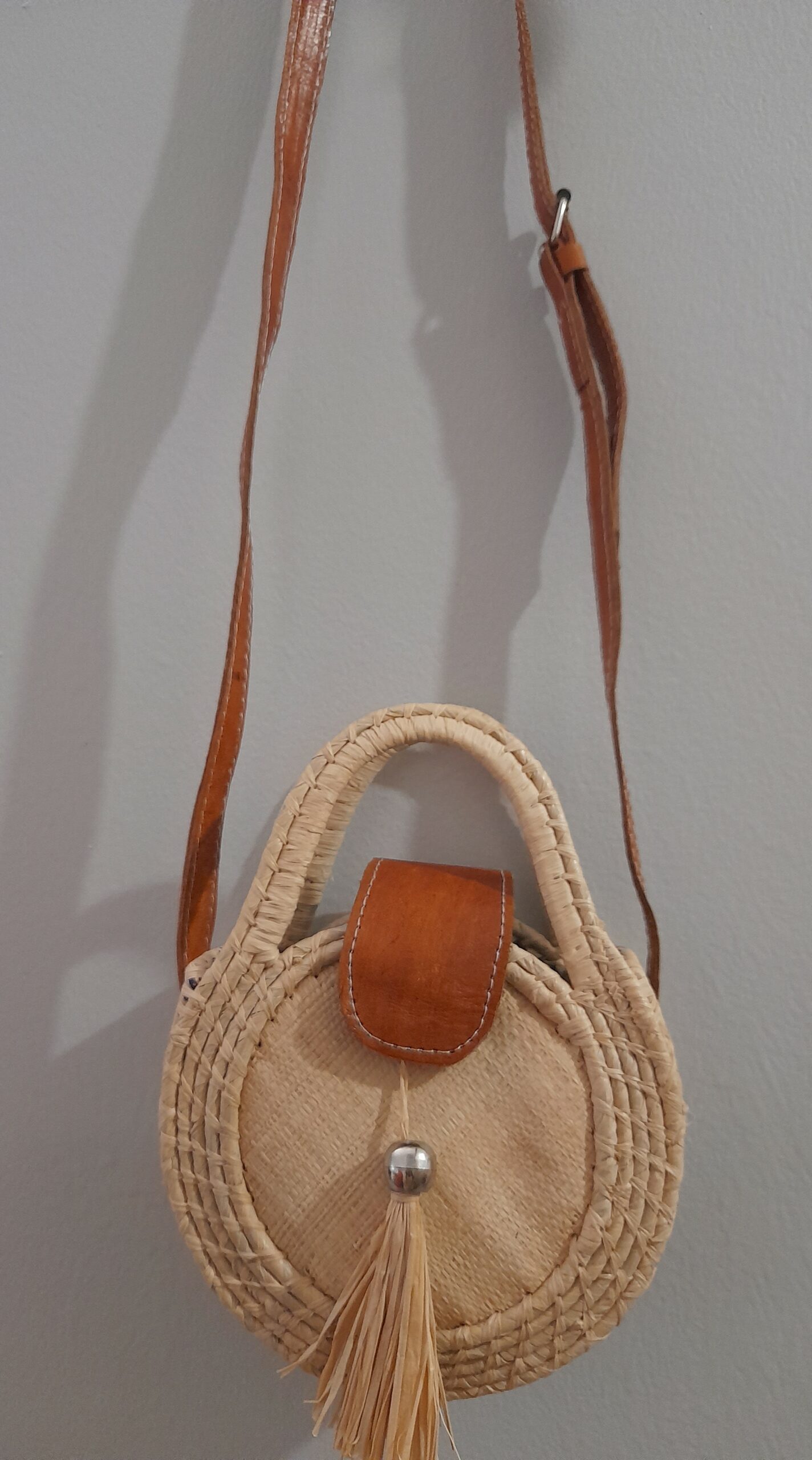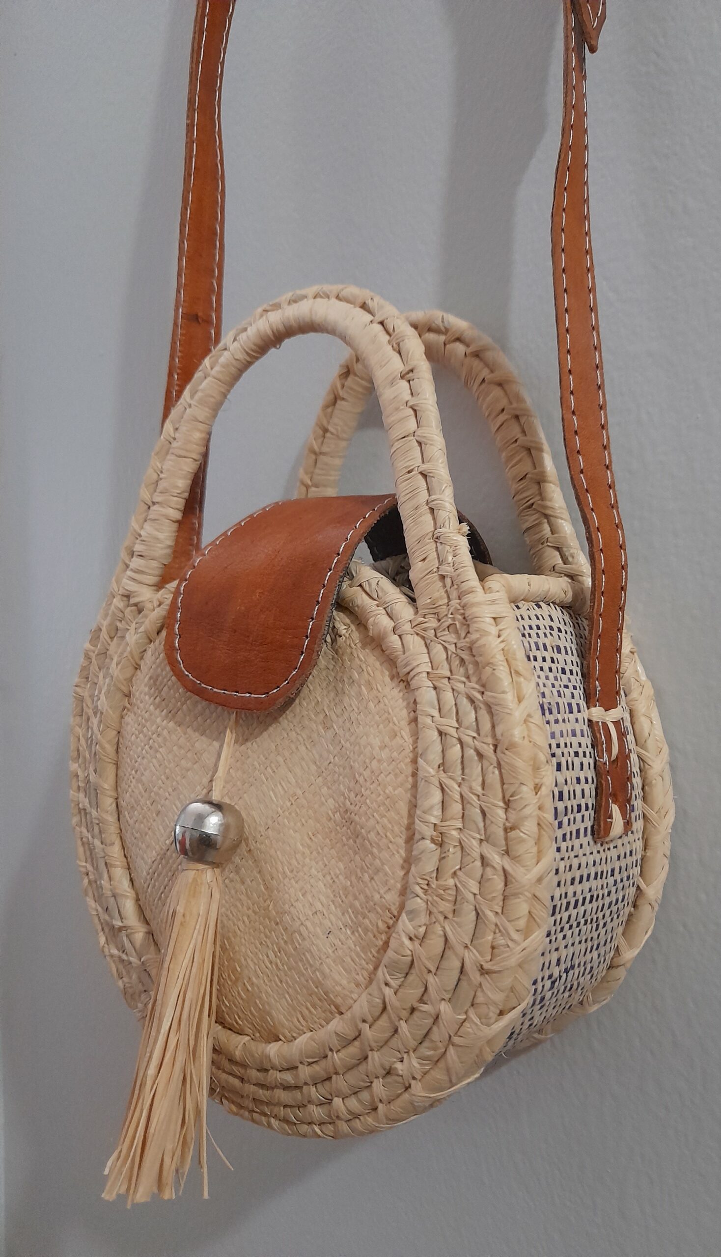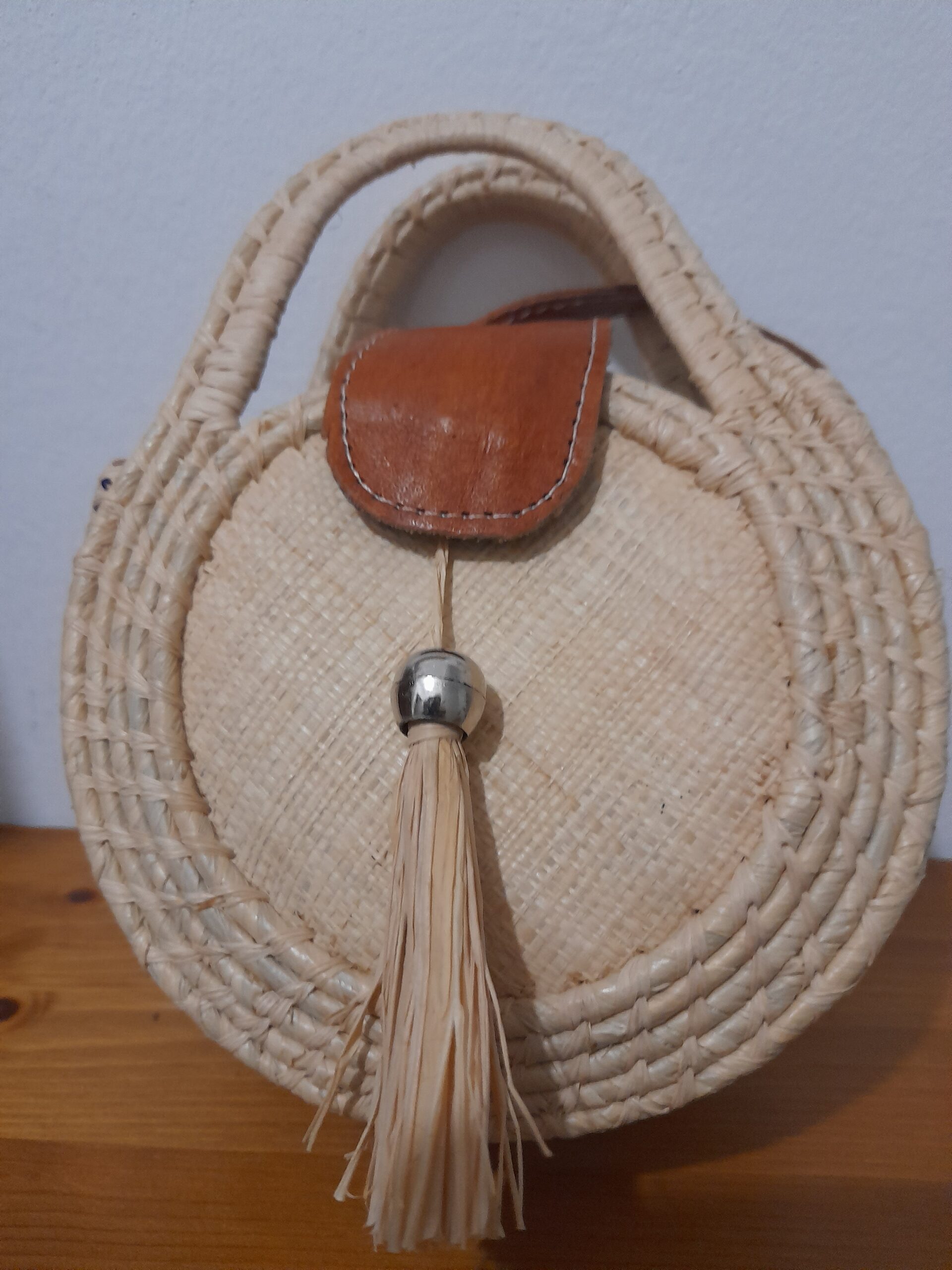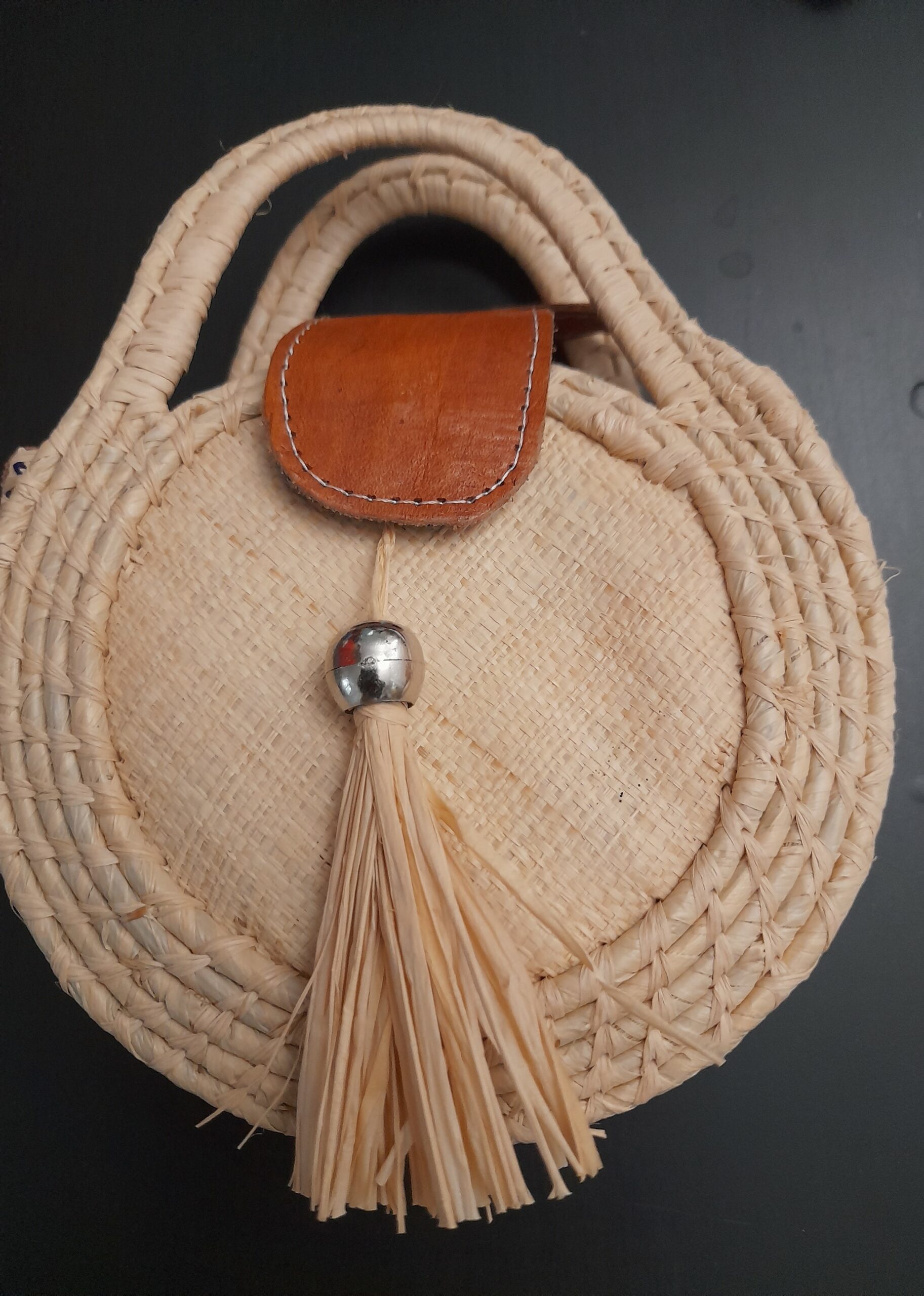 Composition : 90% raphia, 10% cuir. Fabriqué à Madagascar