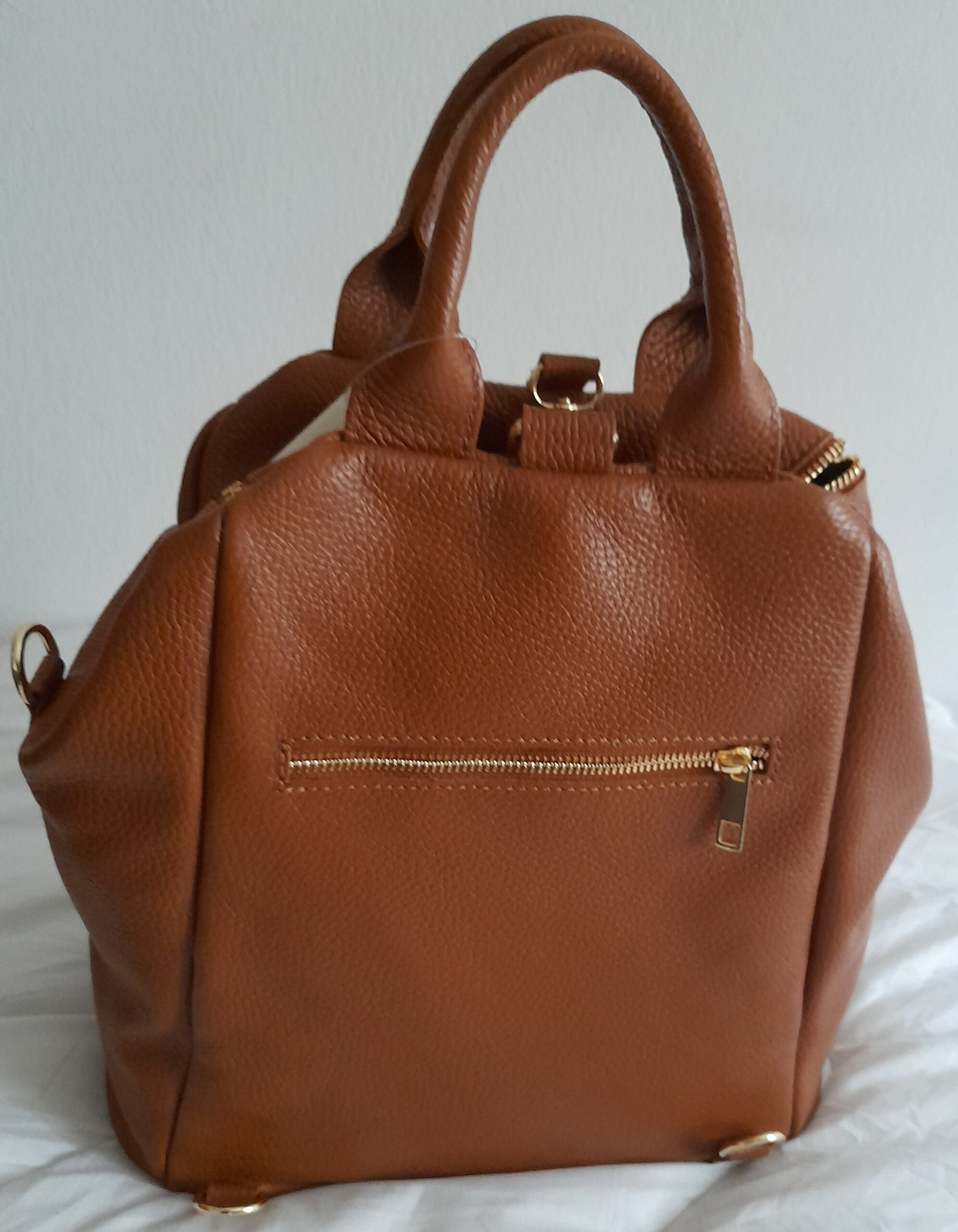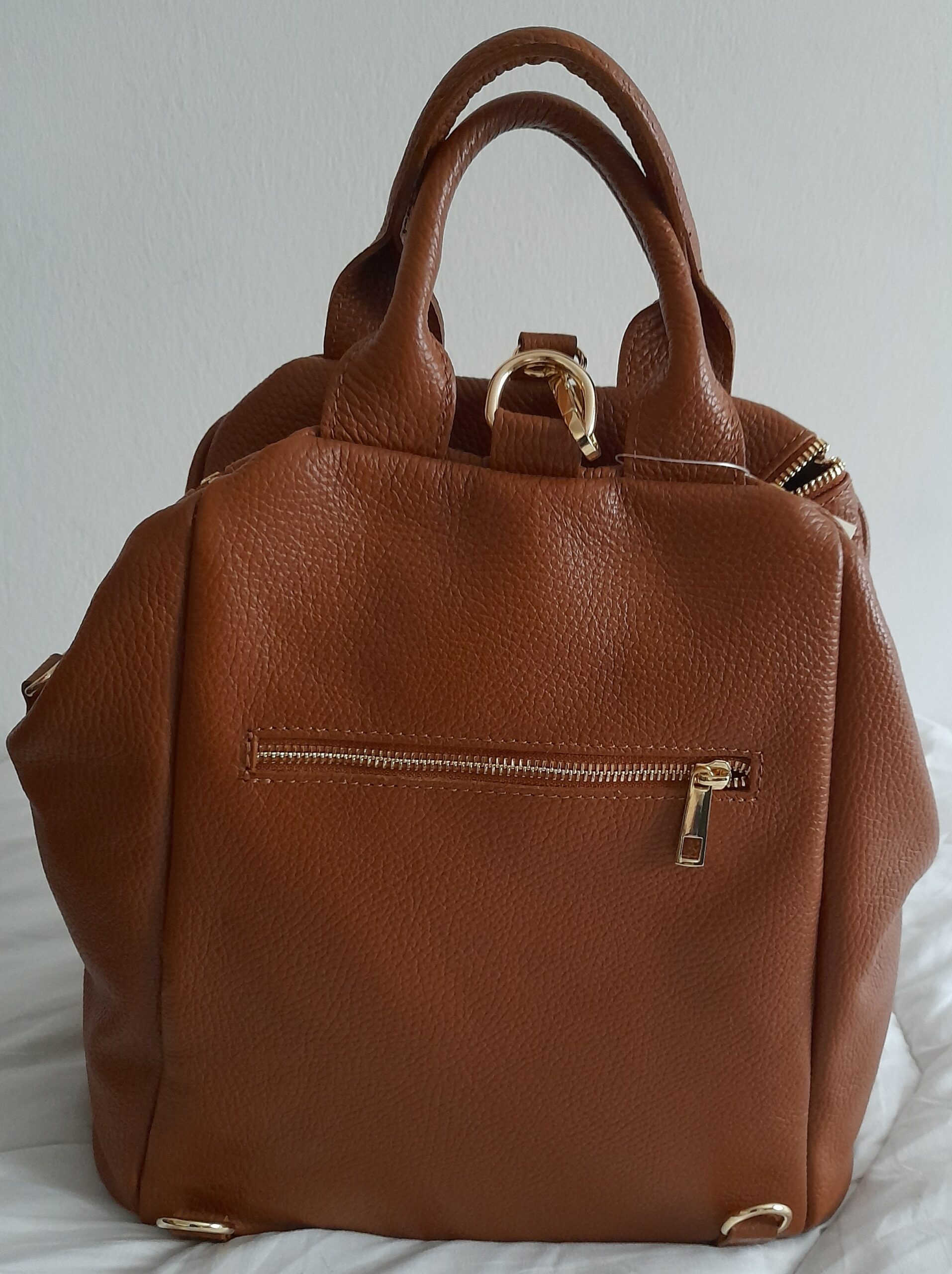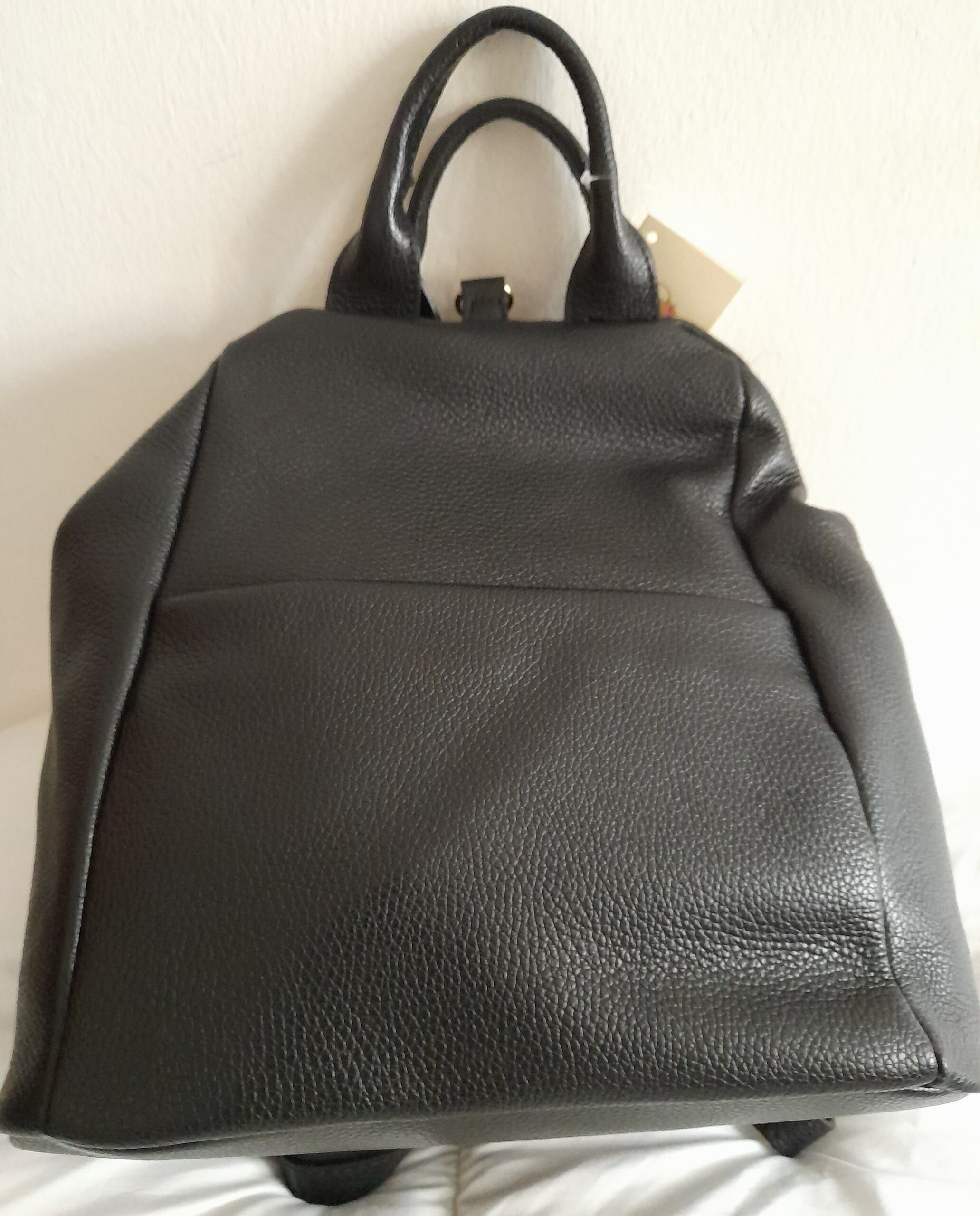 Très élégant sac à dos de ville ! Un sac femme pratique pour celles qui circulent à vélo ou apprécient d’avoir les mains libres ! Ce sac à dos est fait en cuir grainé rehaussé de petits détails en métal doré pour un raffinement maximum. Les deux bretelles réglables par boucle à ardillon passent dans une boucle métal par-dessus la fermeture zippée. C’est original et sécurisant. Sac femme avec petite anse ronde. Une poche zippée intérieure + une poche zippée devant. Le style et la praticité sont réunis dans ce tout nouveau sac à dos en cuir EMA, l’accessoire parfait à porter tout au long de la journée.