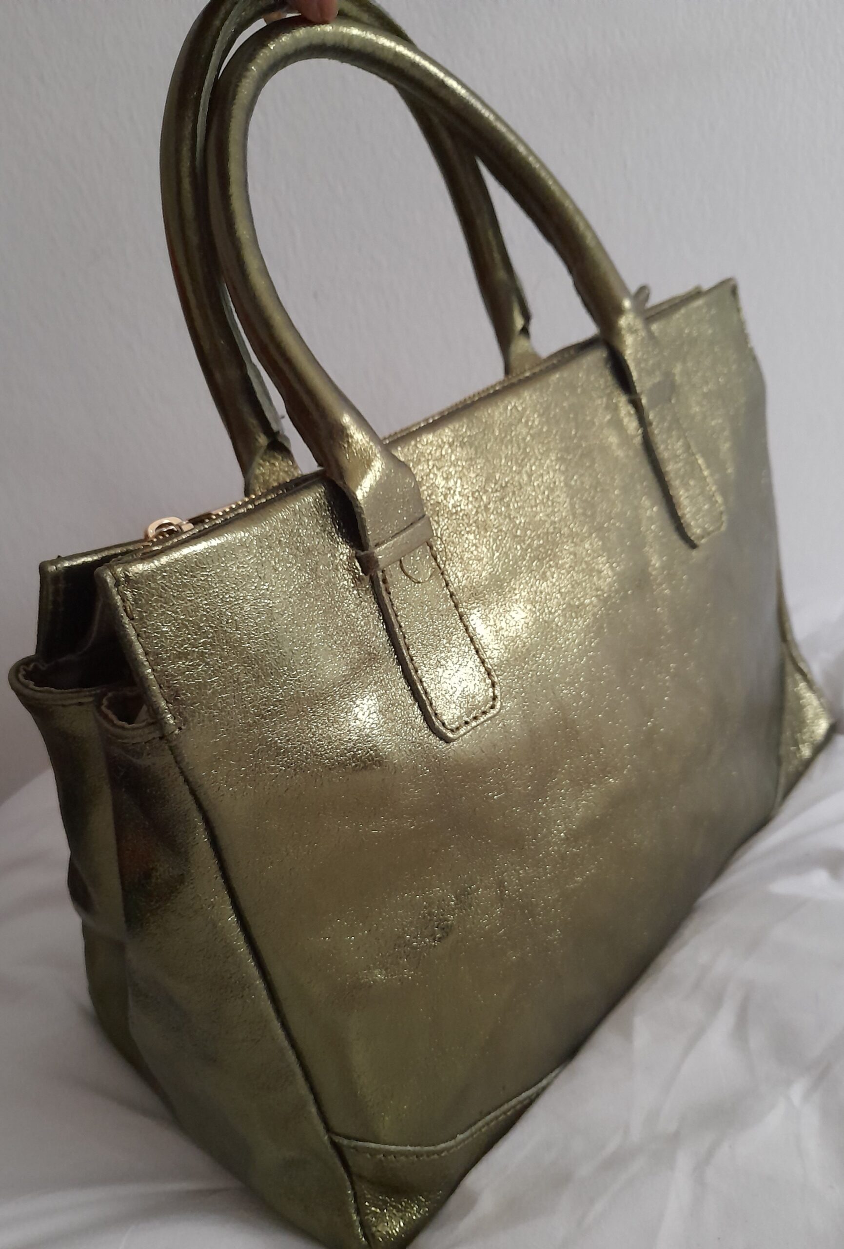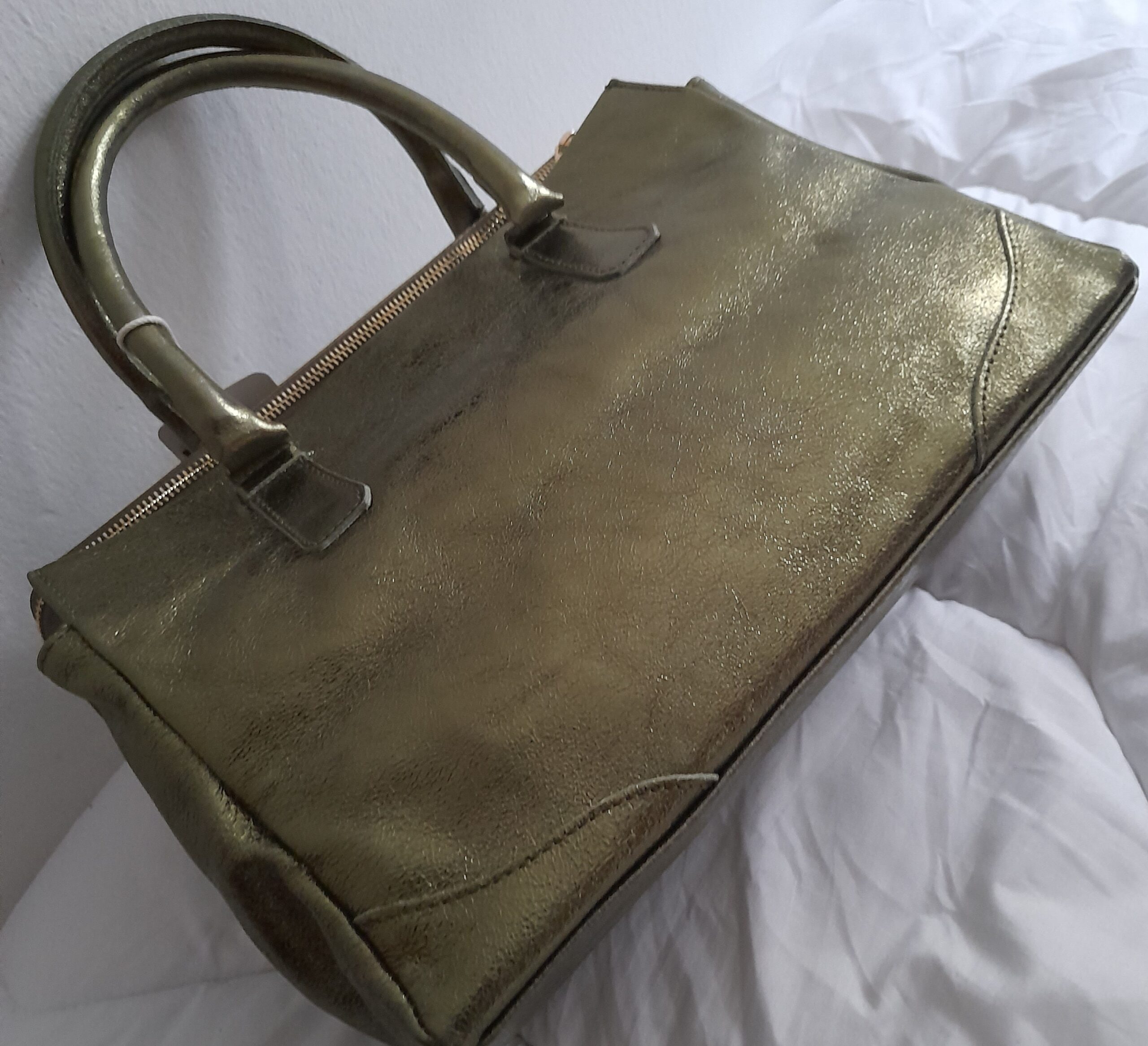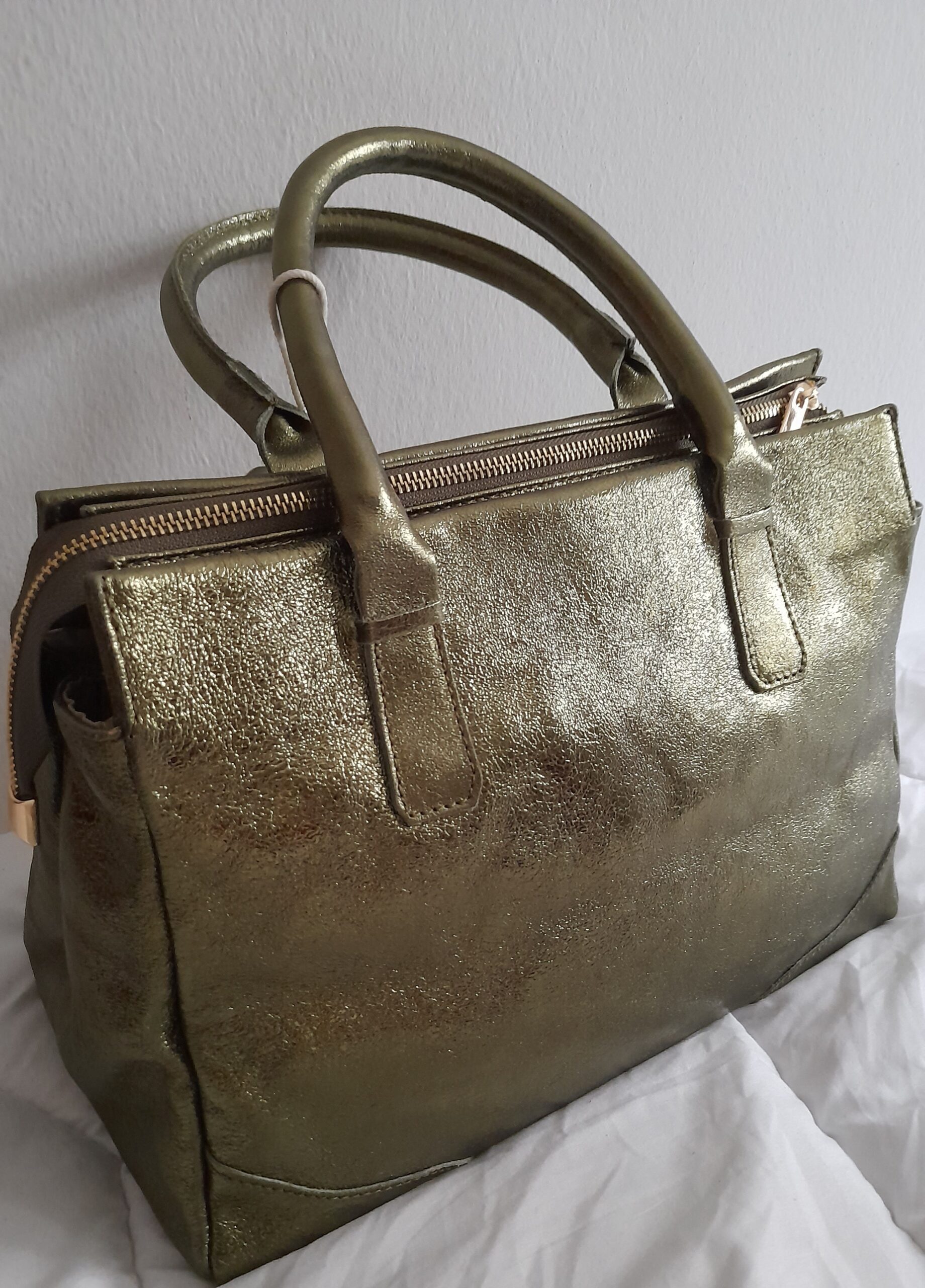 Matière : 100% cuir de vachette grain métallisé. Fabriqué en Italie.