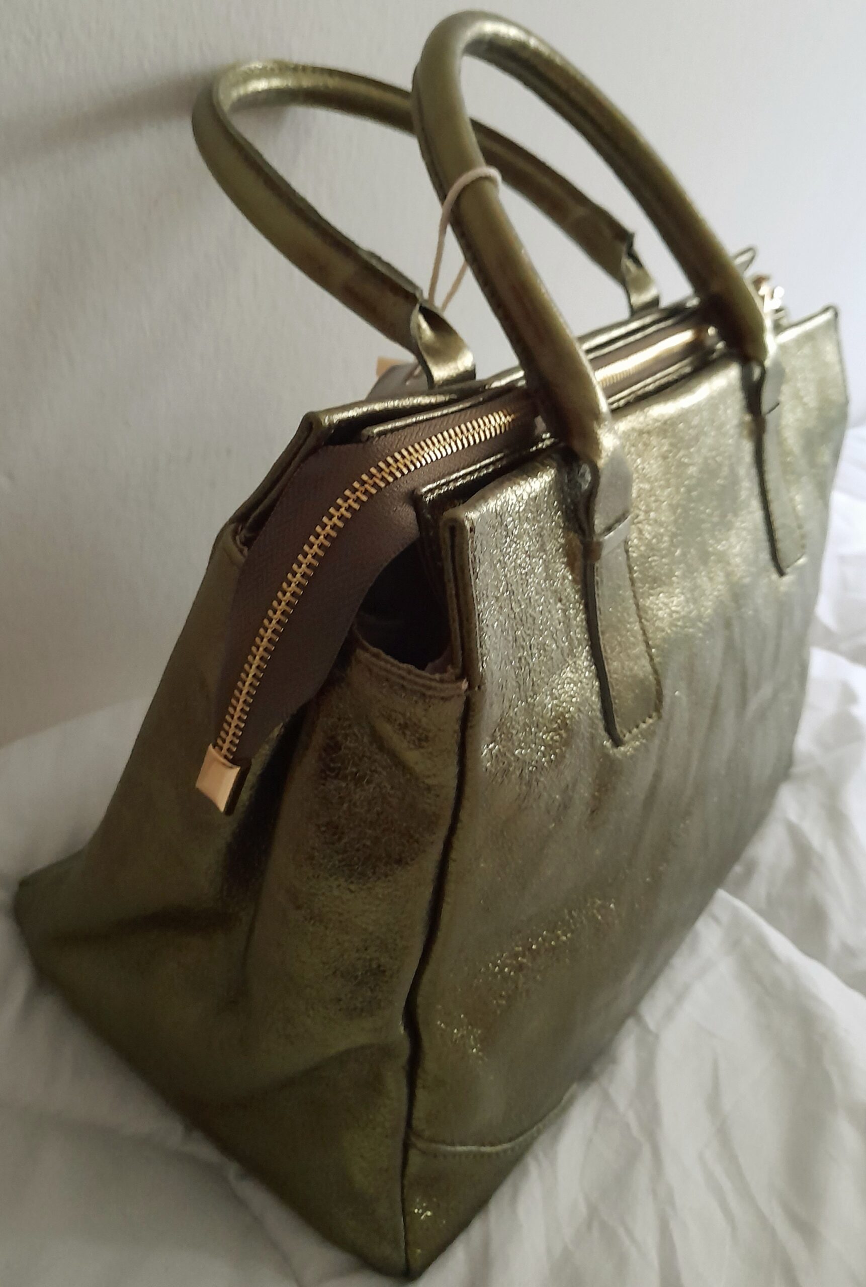 Le compartiment principal s’ouvre à l’aide d’une fermeture éclair. L’intérieur en tissue haut de gamme est divisé en deux avec une poche centrale zippée. Le sac est équipé de 2 petites poches latérales et une poche latérale zippée.