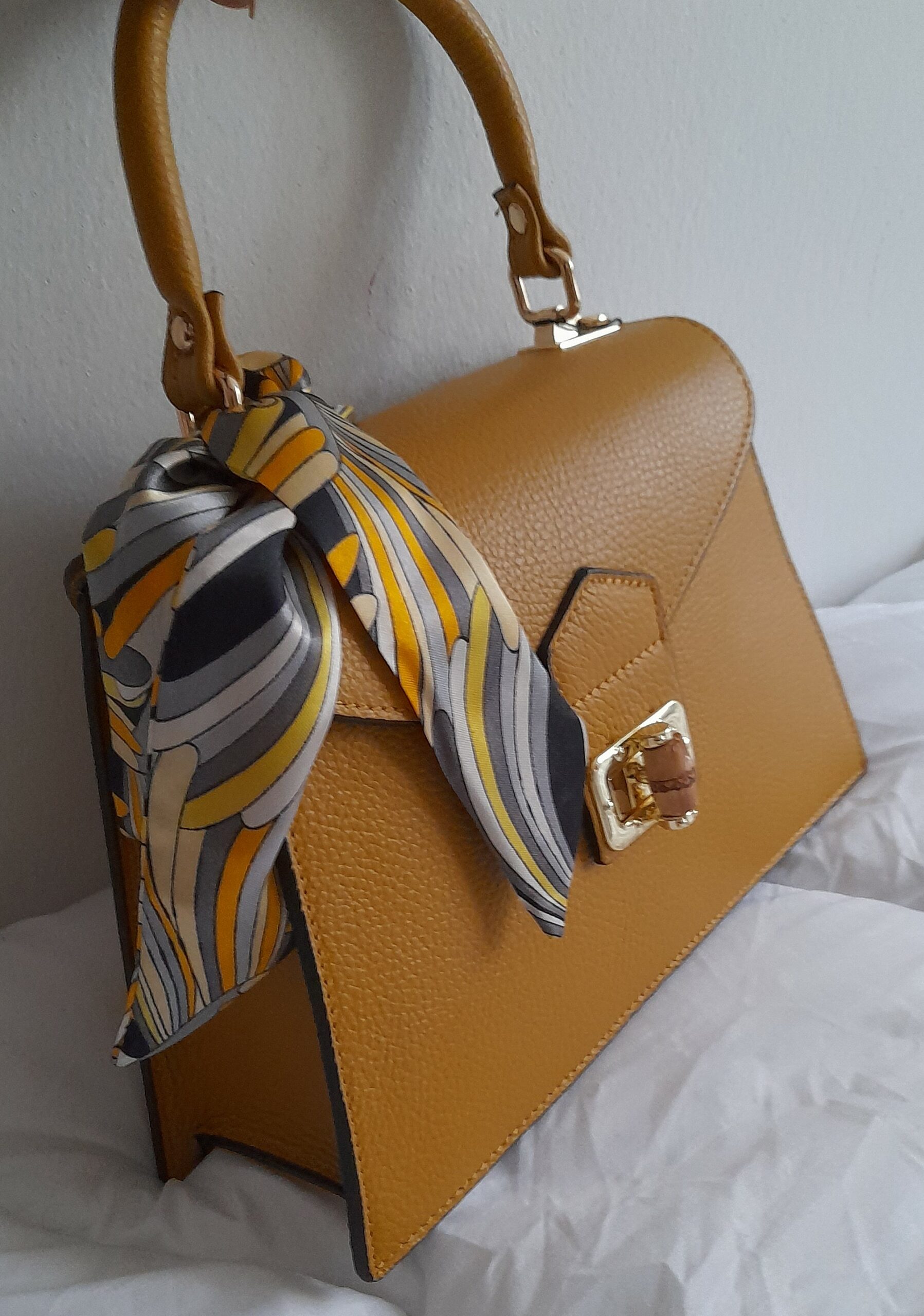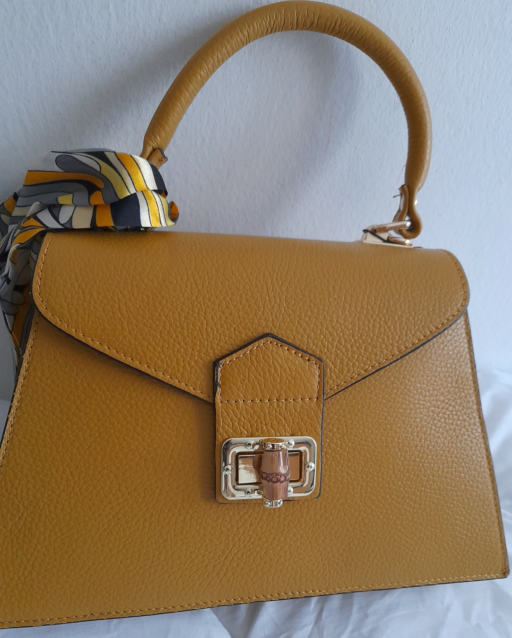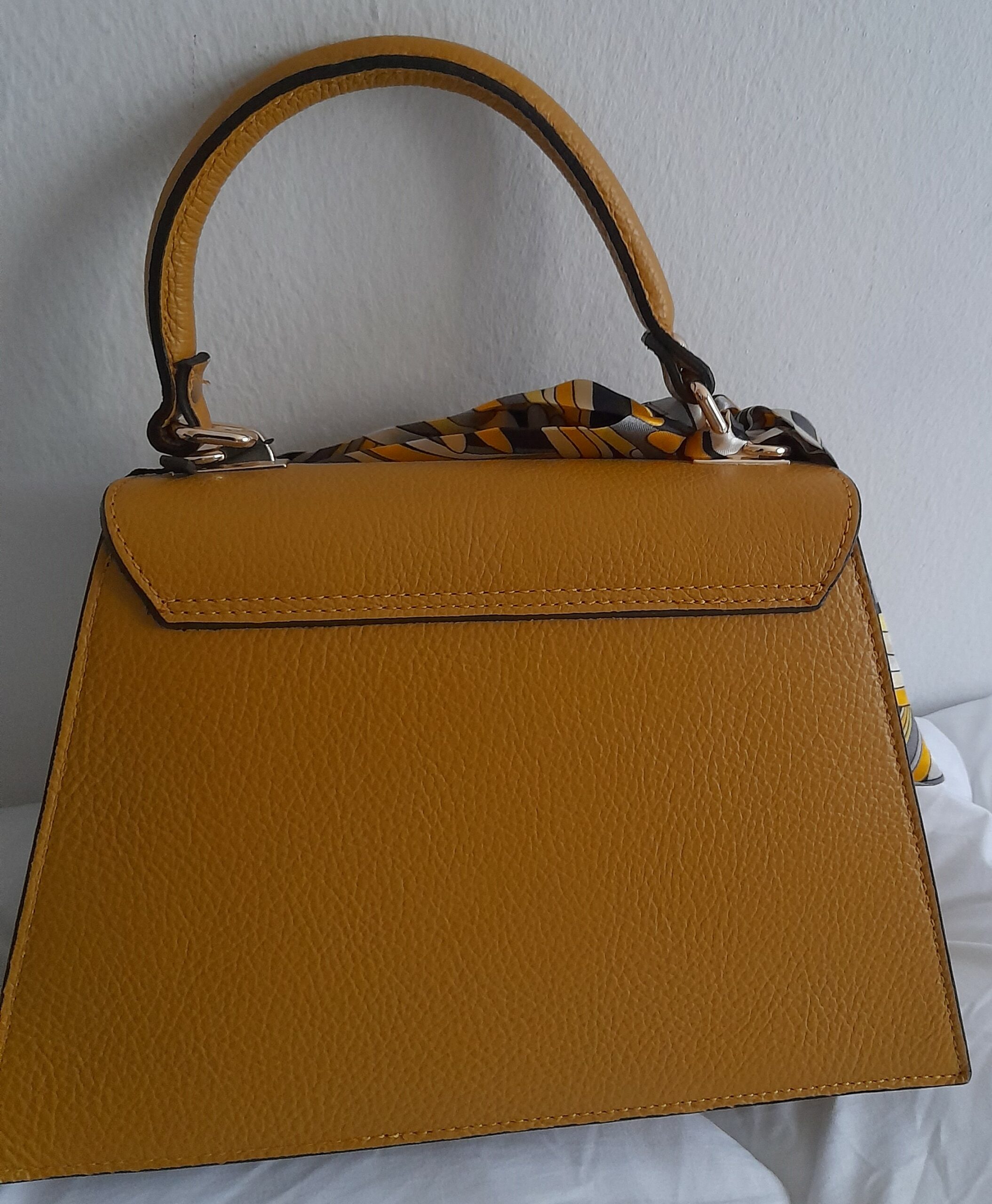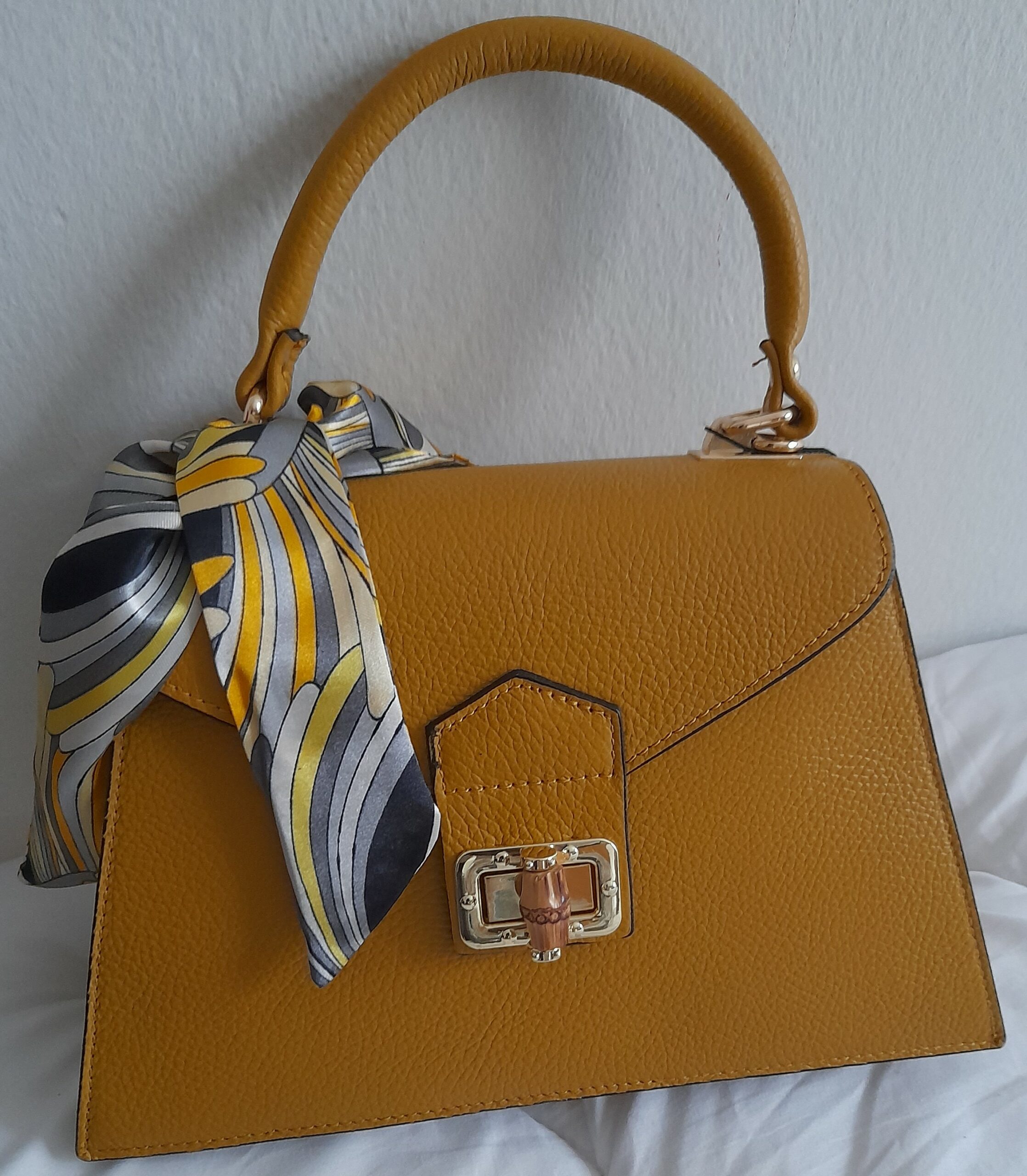 Sac à main en cuir grainé Poignée Foulard (jaune moutarde)