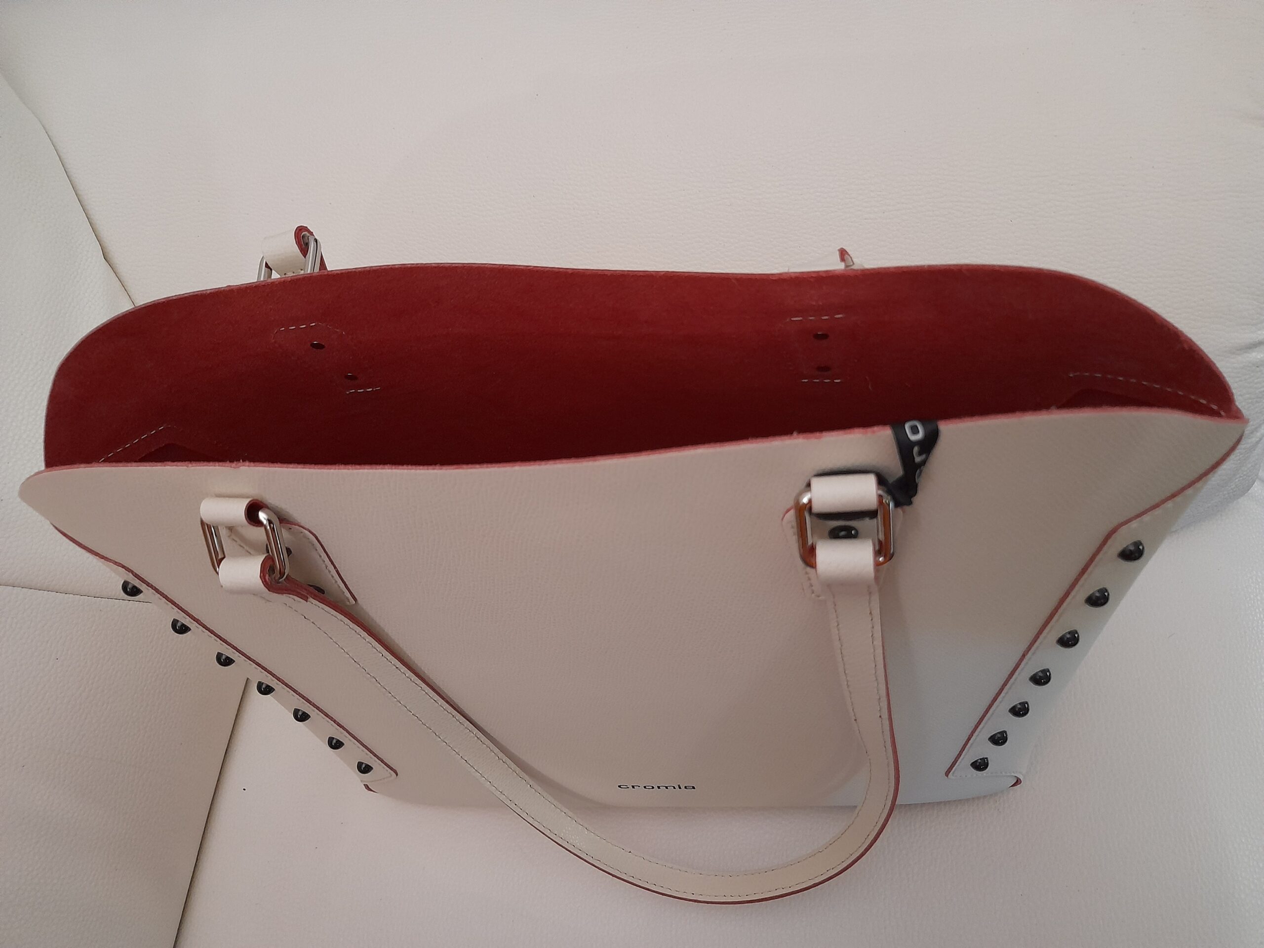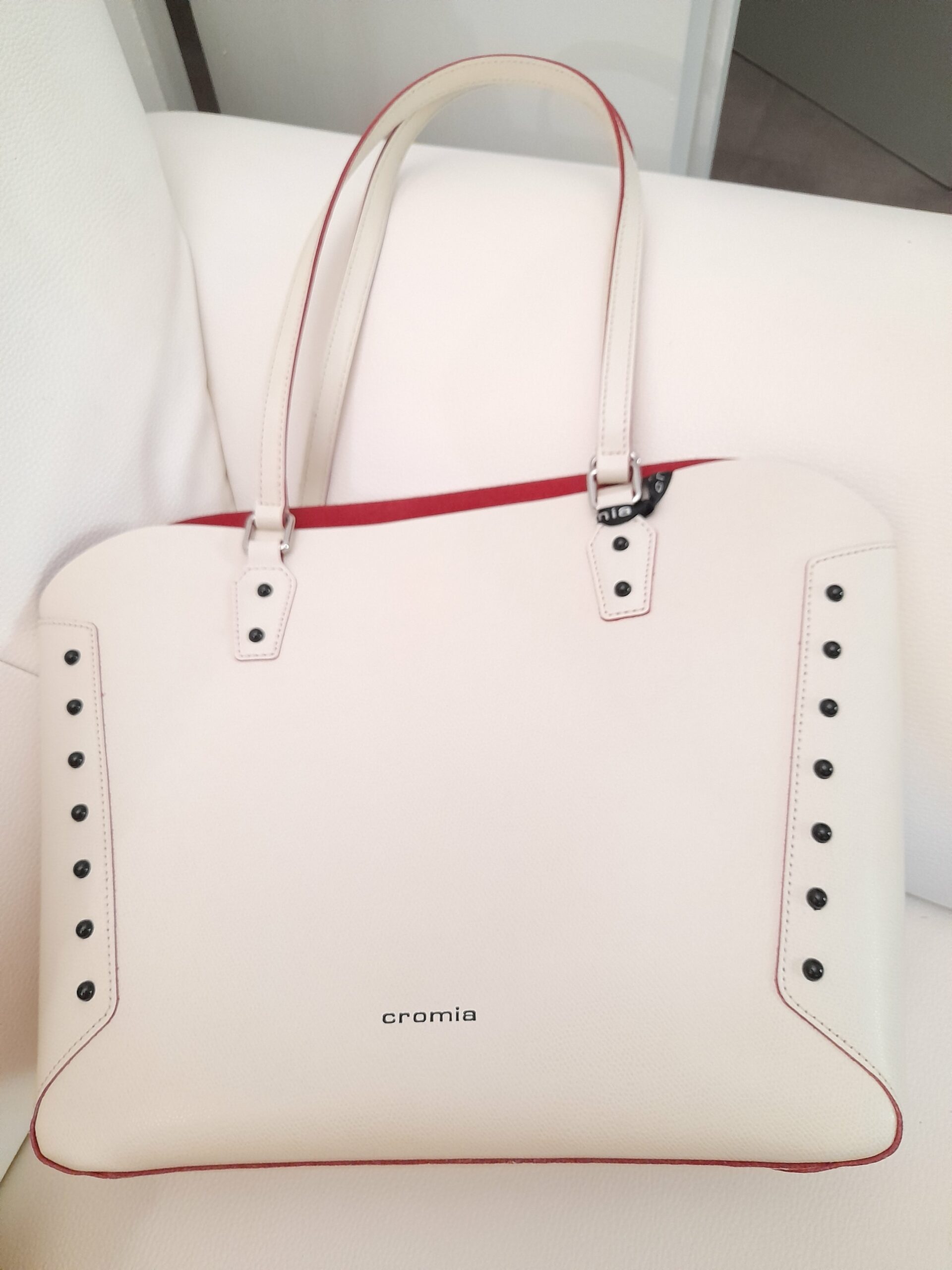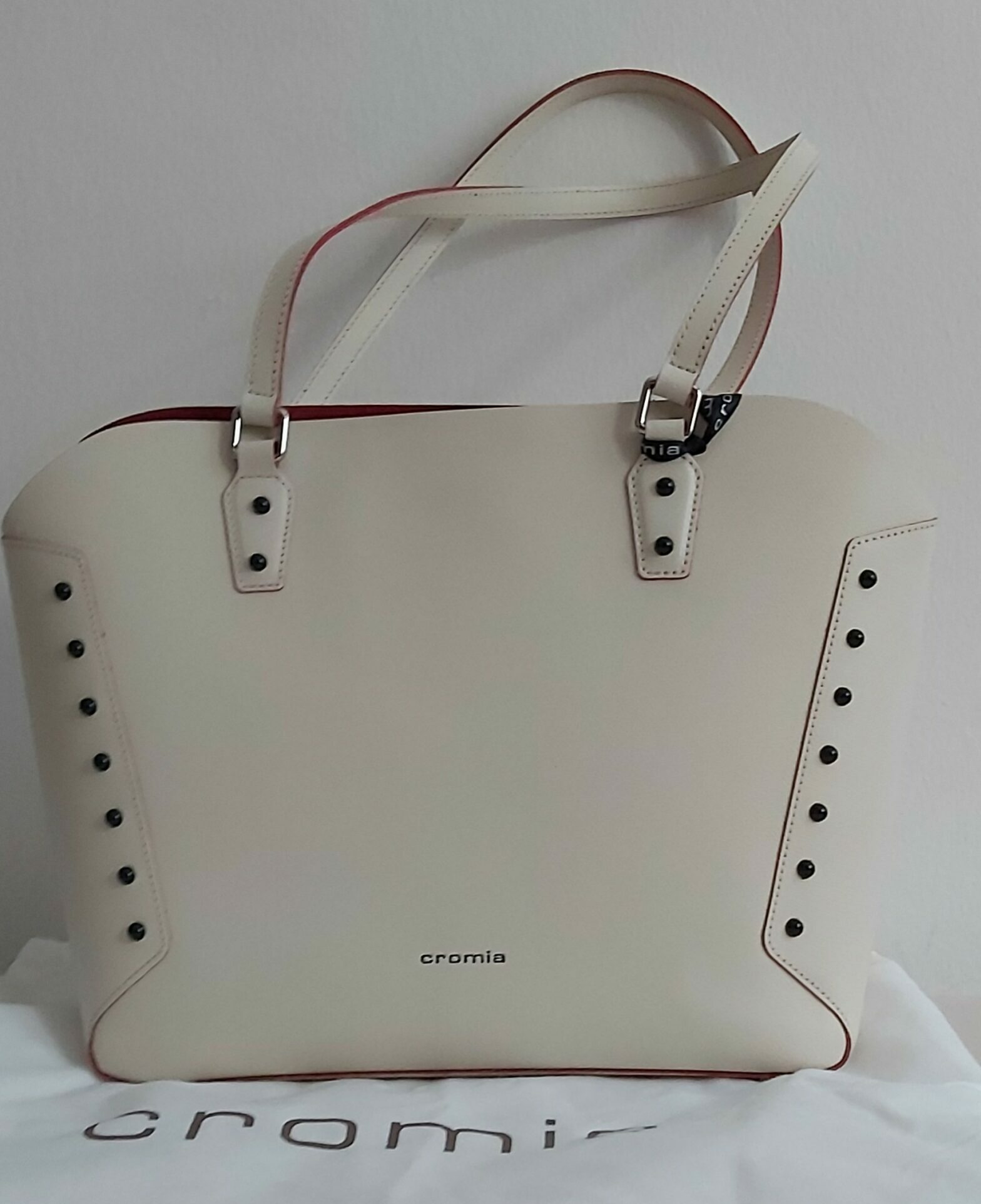 Le sac cabas TIKI de CROMIA est d’une élégance avec l’illusion créée par les ornements clous argentés et les deux grandes anses en cuir. Ce modèle spacieux est doté d’une grande pochette en tissu incluse comportant 2 poches intérieures dont une zippée.