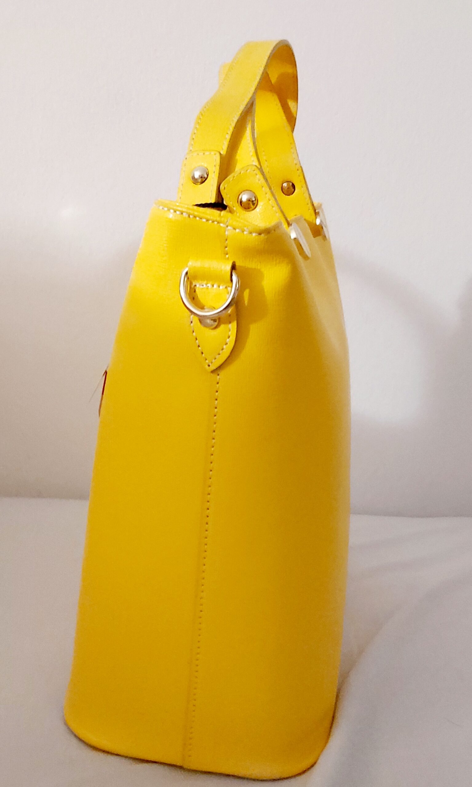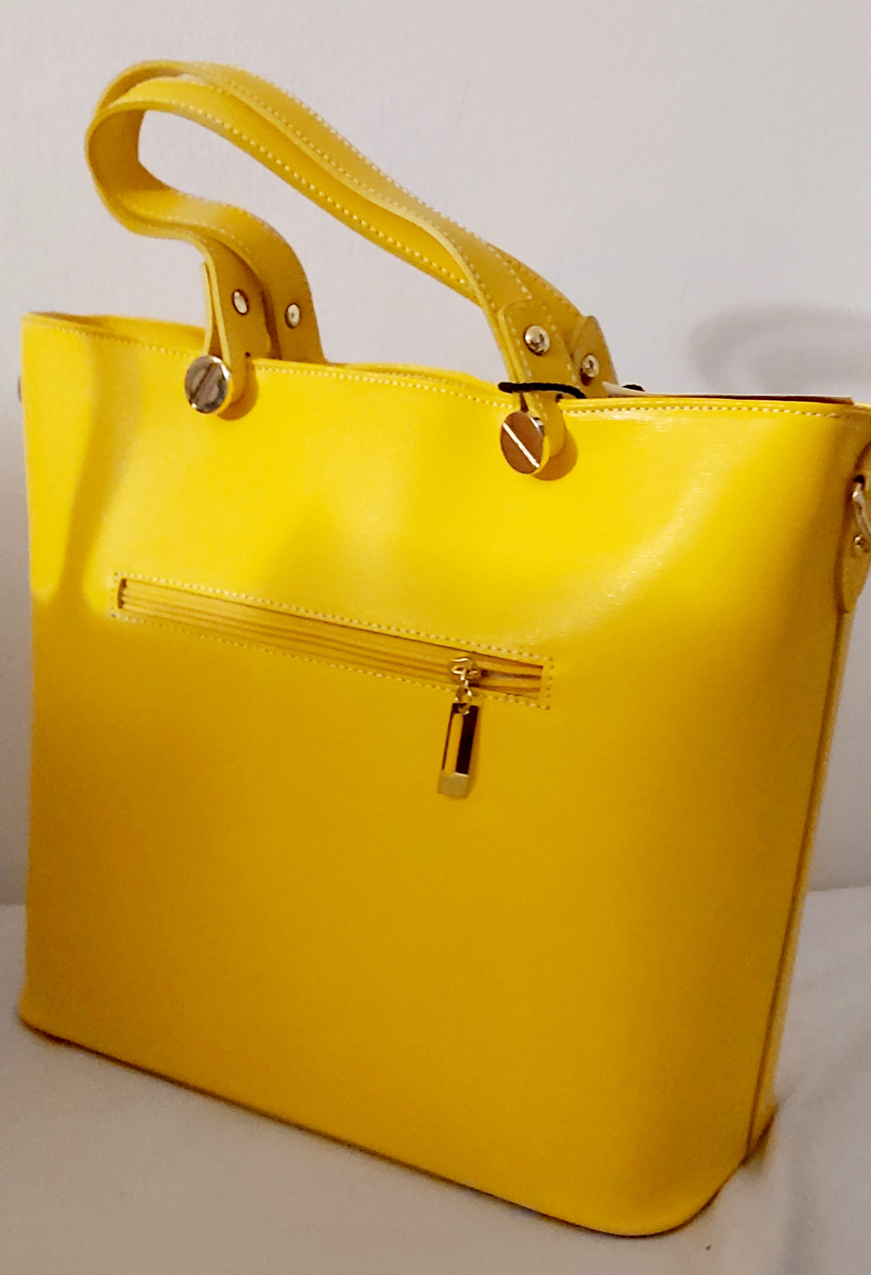 Plus qu’un simple sac, laissez-vous séduire par ce grand sac tendance. Sac shopping fermeture éclair, grande capacité de volume et très pratique en toutes circonstances. Ses deux anses et sa bandoulière amovible vous permettent de porter ce modèle selon vos envies soit à la main soit à l’épaule. Composition: 100% Cuir de Veau. Fabriqué en Italie Dimensions : 38 x 29 x 11 cm. Couleur : Jaune Anses rigides avec détails doré décoratifs Bandoulière en cuir amovible : incluse 2 poches intérieures dont 1 à fermeture. 2 poches internes. 1 poche zippée au dos. 1 poche extérieure arrière 1 grand compartiment…