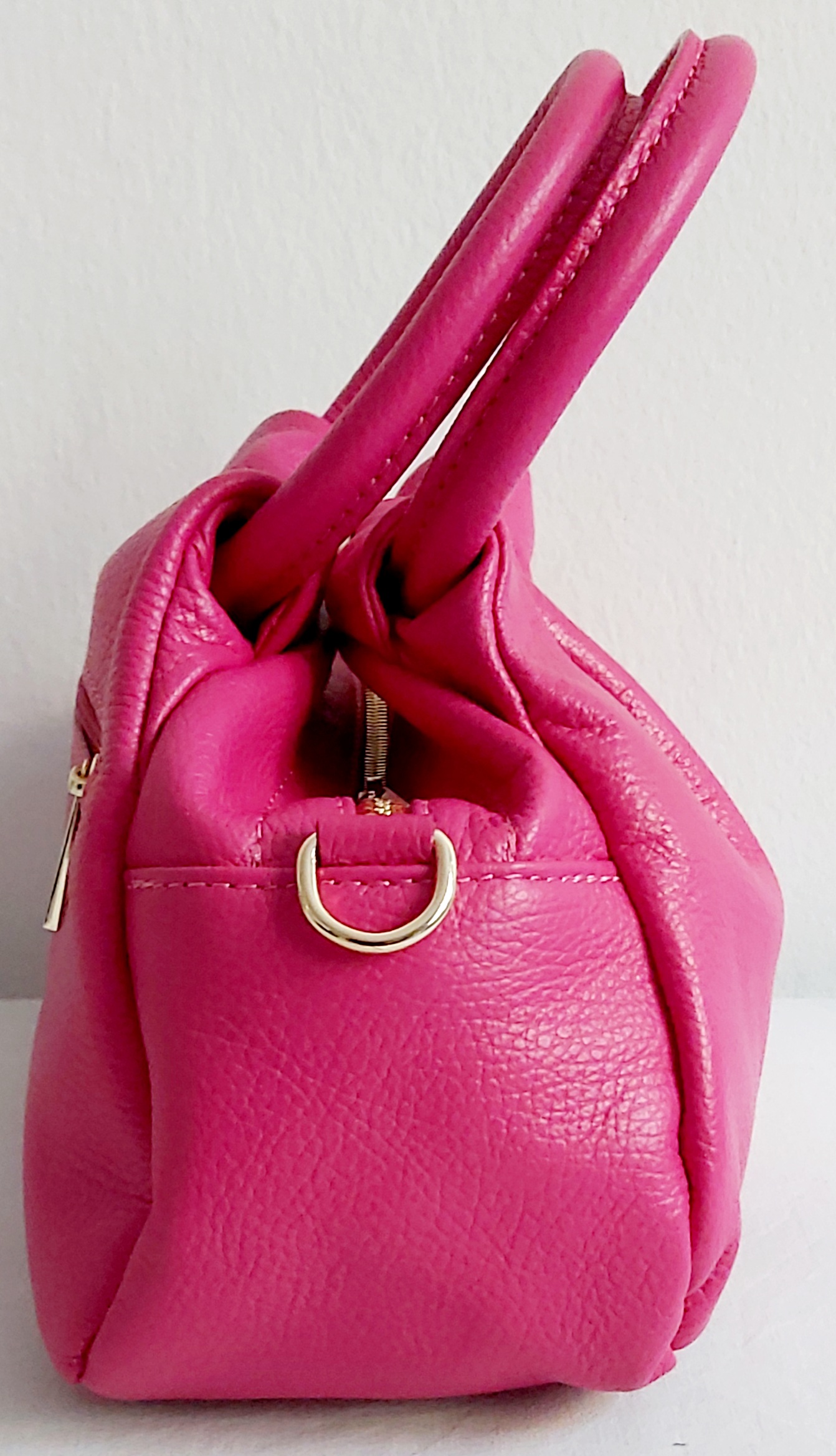 Sécurisé, il a une fermeture zippé tout le long qui permet de protéger vos affaires. Le résultat est unique. Sa forme sera idéale pour y ranger les petites affaires du quotidien et sa couleur élégante illuminera parfaitement votre style. Composition : 100% CUIR de veau fabriqué en Italie. Doublure 100% cuir de veau. Dimensions : 28 cm x 15 cm x 7 cm Couleur: Rose Finition raffinée. Style bourse. Compartiment principal avec fermeture pression. Intérieur doublé en cuir avec poche latérale ouverte Poche arrière extérieure fermeture éclair