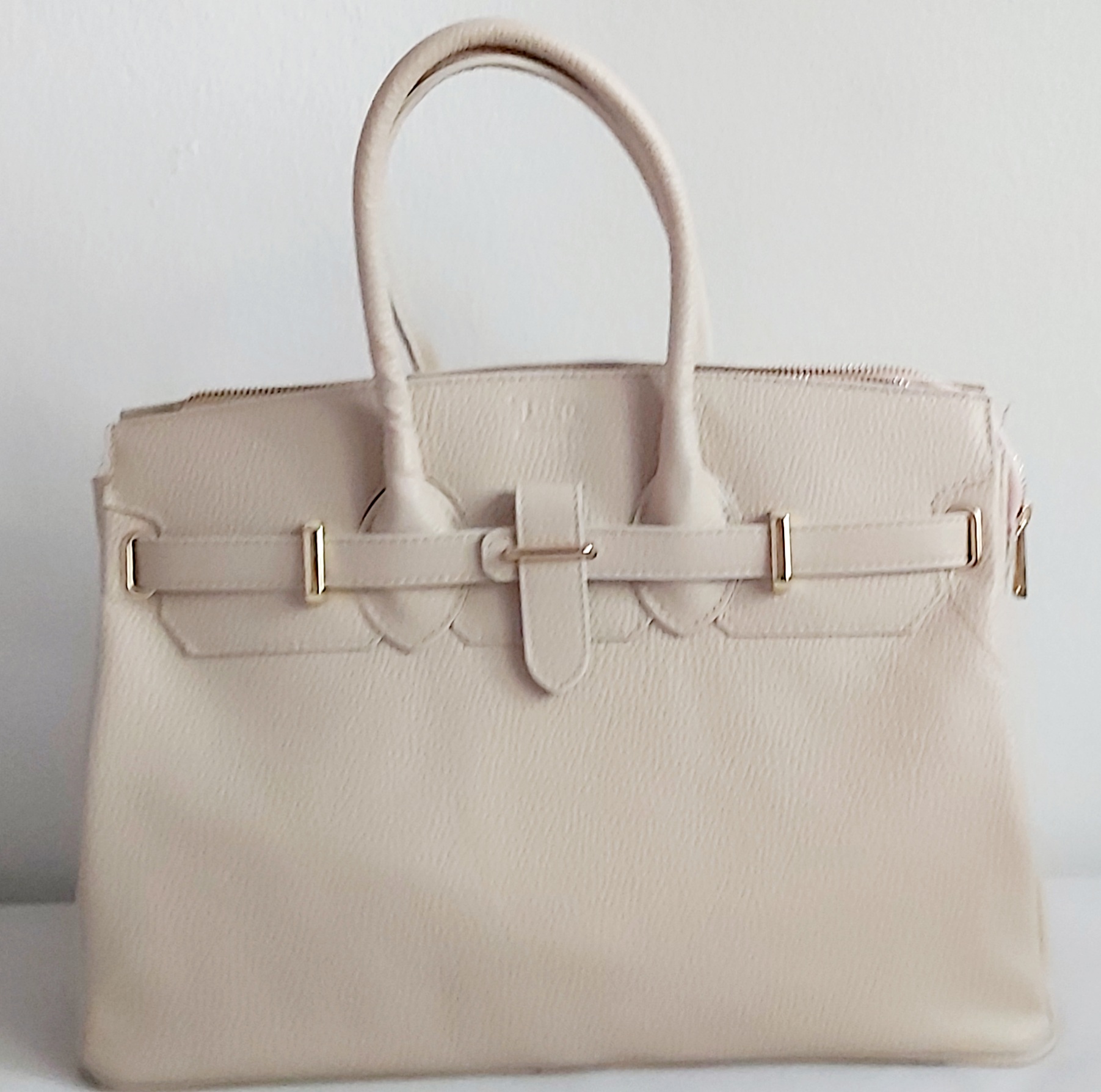 Sac à main en cuir Italien. A porter en toute occasion, ce sac à main élégant ajoute un détail remarquable à chaque tenue. Dimensions 28 x 39 x 18 cm. Sac Frame Cuir martelé Doublure en polyester Structure semi-rigide 1 compartiment Couleur: Beige – Dimensions: 39.00 x 28.00 x 18.00 cm – Hauteur d’anse (max): 13.00 cm – Poids: 1.00 Kg Type – Sac Frame Composition : 100% CUIR de veau martelé. Fabriqué en Italie – Doublure en polyester Fonctionnalités – Structure semi-rigide – 1 compartiment Partie extérieure – Pieds en métal sur le fond. Partie intérieure – Poche à l’intérieur…